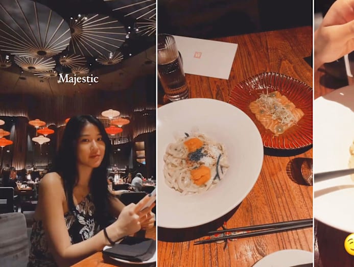 Yummy factor: Now that Yixin is back from filming overseas, the lovebirds are finally reunited and able to dine out together. They enjoyed one of their many dates at Koma, where they had the Wafu Carbonara topped with uni and smoked butter (check out that runny egg), sashimi and more.