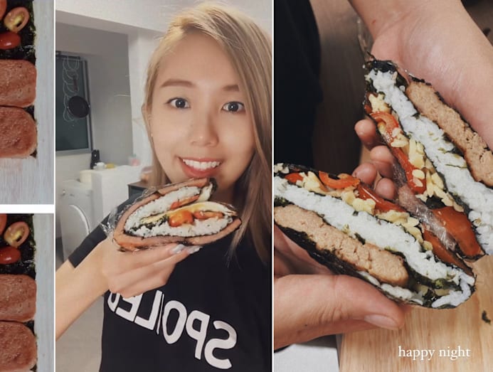 Yummy factor: Evelyn’s folded kimbap looks unbelievably yummy for a snack that’s so simple to put together. She chose to combine fried luncheon meat, sunny side up, cherry tomatoes and rice for a shiok seaweed sandwich with plenty of texture and crunch.