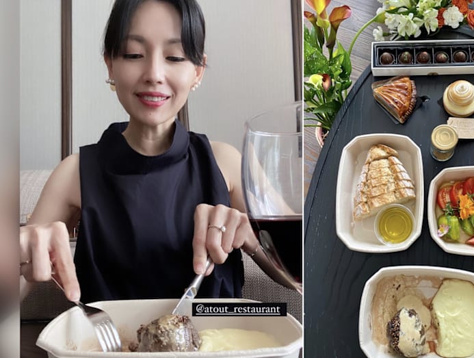 Yummy factor: Although one would expect Sharon to eat her fill of local foods now that she’s back in Singapore to visit her mum, she can never resist delish French cuisine — especially if it’s prepared by Chef Patrick Heuberger, owner and founder of French bistro Atout at Dempsey Hill. We’re talking a tender pepper-crusted Argentine Grassfed Tenderloin served with brandy cream sauce, heirloom tomato salad, and plenty of desserts — hardly what we’d expect on the menu for someone serving her quarantine.