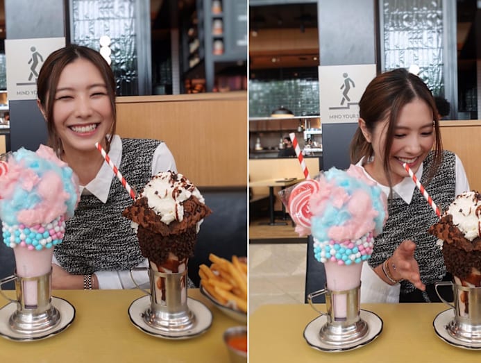 Yummy factor: Are you team chocolate or cotton candy? Either way, Ferlyn is probably going to have her fries and both OTT shakes — decadent toppings and all — anyway with her Live Your Dreams co-star Glenn Yong at American diner Black Tap.
