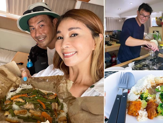 Yummy factor: Thanks to an upcoming Mediacorp programme, Xiuhuan got the chance to enjoy a day out at sea on Darren Lim's yacht, and she was all praise for his hospitality. Not only did the host with the mostest prepare cai png for her, chef Darren also whipped up homely nosh like sweet sour chicken and stir-fried broccoli and cauliflower for dinner.
