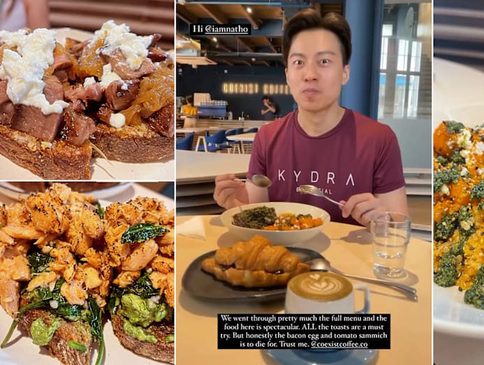 Yummy factor: From a grain bowl with tender beef, quinoa and cubed pumpkin to the hearty open-faced toasts and croissants, Nat certainly ate his fill alongside Kimberly Wang at Coexist Coffee’s second and latest outlet in the Keong Saik neighbourhood.