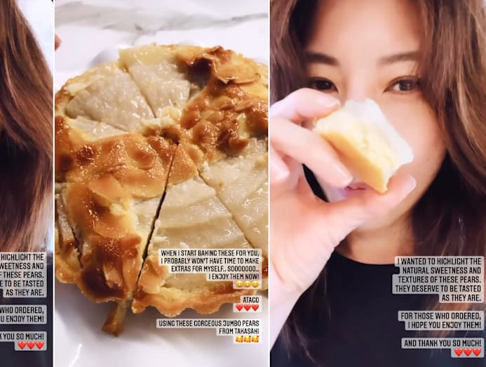 Yummy factor: Just before things get busier, Jeanette decided to treat herself to one of her patisserie's latest creations — a fruit tart featuring jumbo pears flown in from Takasaki, Japan. She’s all for highlighting the natural sweetness and texture of the pears; and judging by her happy grin, it seems like she’s achieved that.