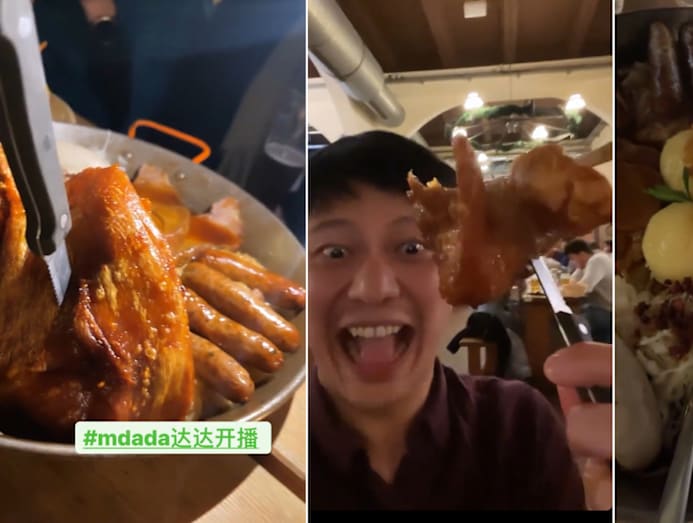 Yummy factor: If there’s one dish Pornsak has to have while in Germany (he's there for online social commerce platform Mdada's travelogue live stream series), it’s probably the country’s signature crisp pork knuckle dish. Served with gravy-laden rice, juicy sausages, potatoes and more, it must have been really shiok to tuck into.