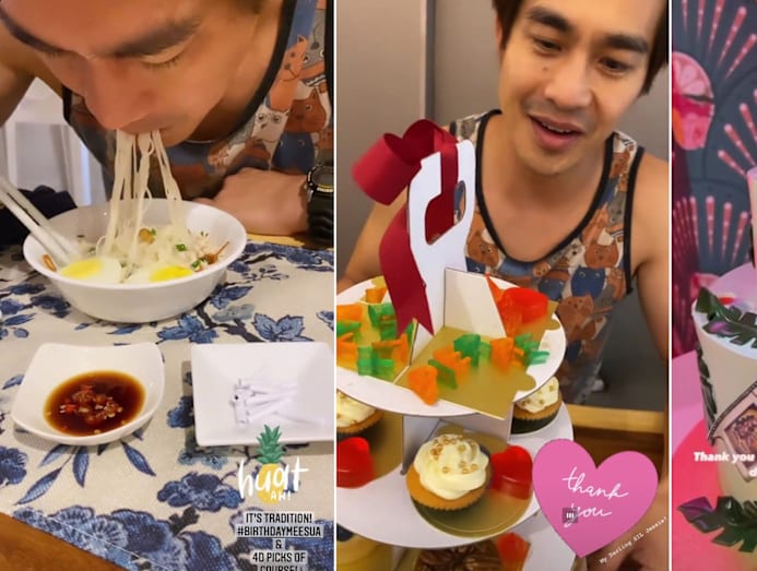 Yummy factor: While he doesn’t look it one bit, Pierre turned 48 on Oct 29 and slurped up birthday mee sua with a hard-boiled egg (as well as picked out 4D numbers) as part of tradition. There were plenty of sweet treats too. Think tiers full of pastries and cupcakes from his sister-in-law, as well as a tropical-themed birthday cake from Bob the Baker Boy complete with 3D caricatures of a tipsy flamingo (a nod to his restaurant) and Pierre sharing a hug.