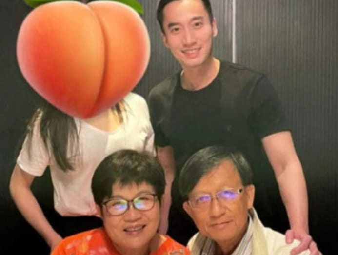 On Chinese Valentine's Day, Michael posted this picture (see above) of him with his mum and dad and a mystery woman, whose face was hidden by a peach emoji.