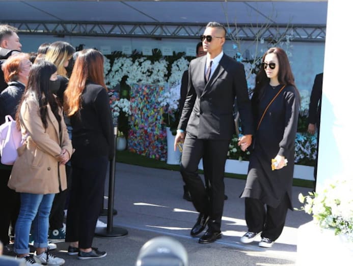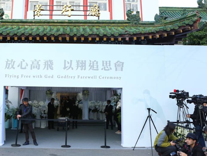 The funeral began at 8am and lasted for about two hours. Godfrey’s two older brothers stood in front of the line to greet guests, while a puffy-eyed Bella accompanied his parents, who were seated. When it was the media’s turn to pay their tributes, Godfrey’s mother and father immediately stood up to bow in gratitude.