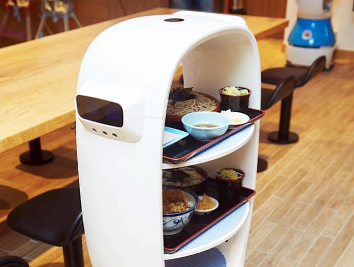 The robot waiters speak both English and Mandarin.