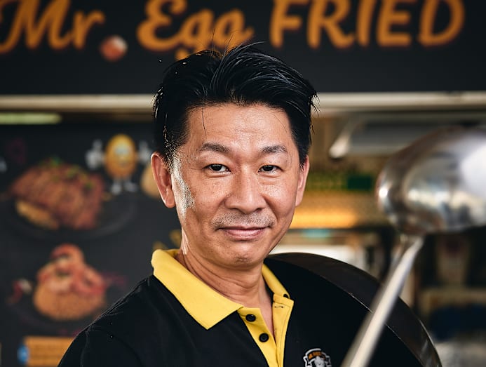 What's the latest trend in the hawker scene? Well, clearly it's Din Tai Fung-style fried rice cooked by restaurant chefs-turned-hawkers. Hong Style Fried Rice, Chef Wang Fried Rice and the rapidly-expanding King of Fried Rice are just a few examples. Joining the line-up is the simply-named Mr. Egg Fried Rice, which recently opened in a breezy Bishan kopitiam. The man behind it is 47-year-old Eric Yam — who arguably bears a passing resemblance to Simu Liu, the star of Shang-Chi and the Legend of the Ten Rings. But more on that later.