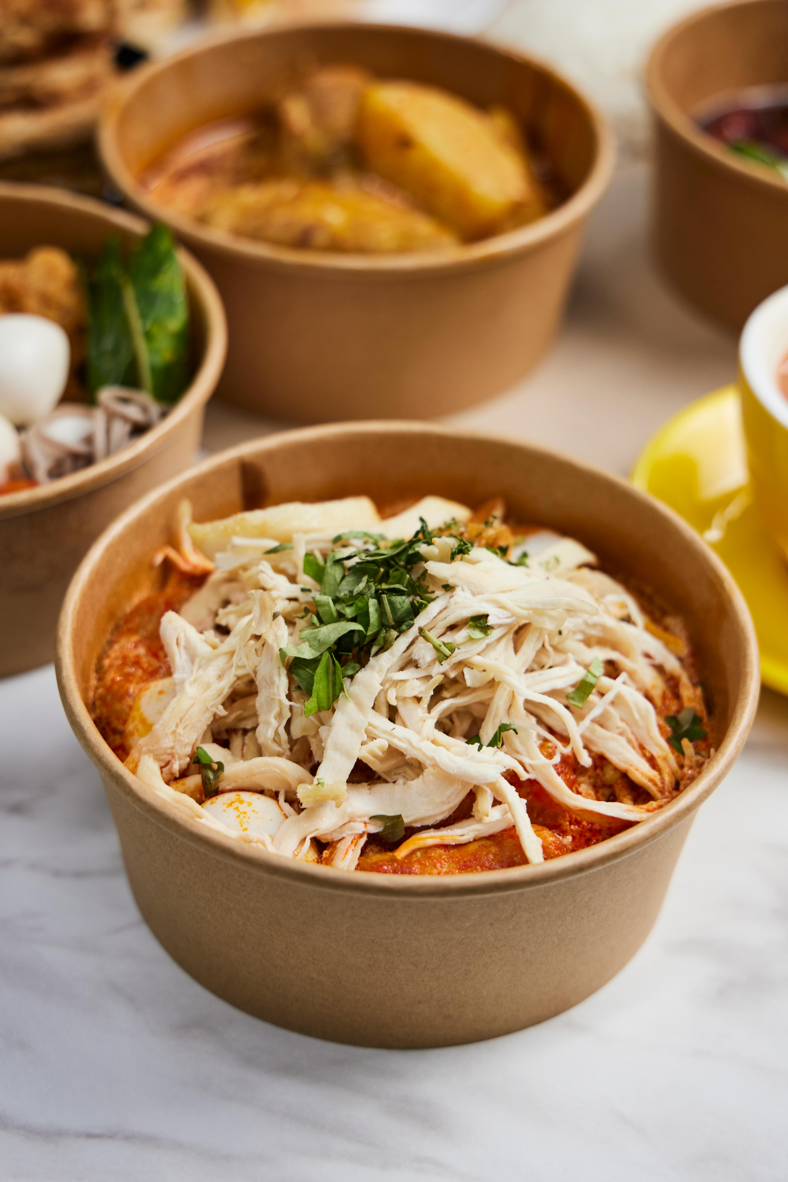 This bowl of thick rice noodles, fishcake slices, shredded chicken, quail’s egg, and gravy soaked taupok is decently lemak and slurpable. Not the best we’ve tried but as good as any you’d find in a hawker centre, if you’re craving a spicy bowl of noodles.