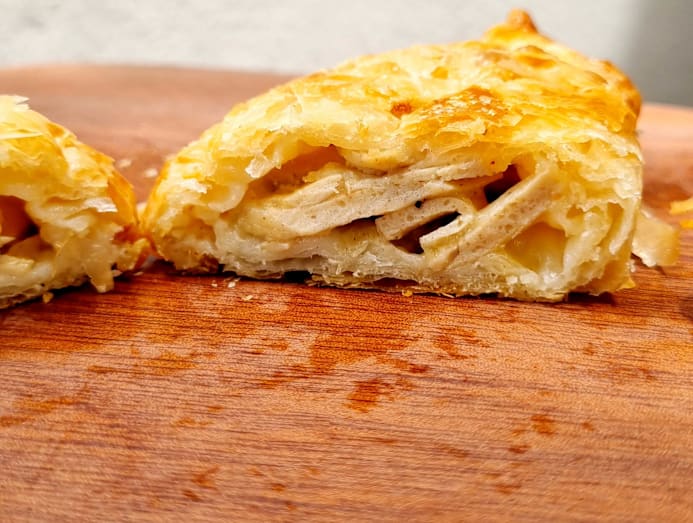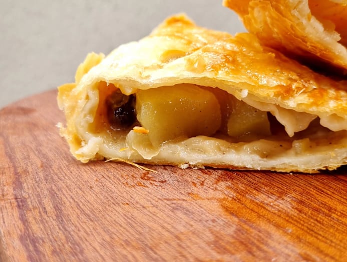 The only baked dessert puff option from Puffs N Deli. The not-too-sweet apple filling has a moreish soft and crunchy texture, with the occasional juicy raisin mixed in.