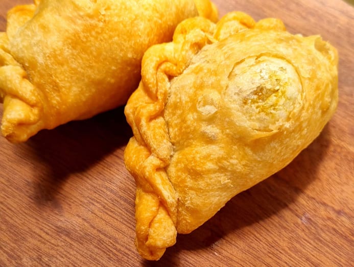 The shop boss, a former IT professional, serves both fried and baked curry puffs.