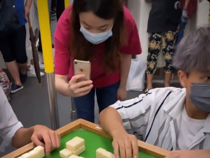 HK Instagrammers Set Up Mahjong Table On MTR Train & Confused Passengers