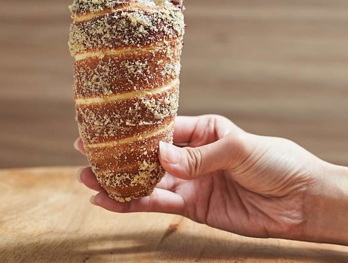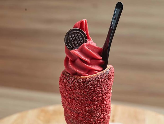 What are chimney cones? They're a popular street dessert from Prague — imagine a more atas version of our local ice cream sandwich, but served in a conical bready pastry. The smoking 'chimney' effect comes from the melding of cold soft-serve ice cream on warm, freshly baked cones, although in our climate, that hot and cold combo quickly turns into a melting mess. The good news is the firm bready pastry cones are resilient and won’t sag or turn soggy. Popular European dessert chain Good Food Coffee & Bakery from Prague already has franchises in seven countries, including China and Dubai, and now it's here in Singapore, at VivoCity. If the dessert looks familiar, that’s because it isn’t exactly new here. Previous iterations include the now-closed Chimney.SG at Scape*. Despite a less-than-stellar history here, Good Food Coffee & Bakery franchisee Rayner is still confident his chimney cones will fair well. “I think Singaporeans will love it.