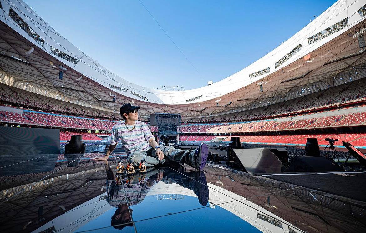 During the rehearsal, JJ posted an IG story with the caption: "What you do when it's your first concert in the Beijing National Stadium."