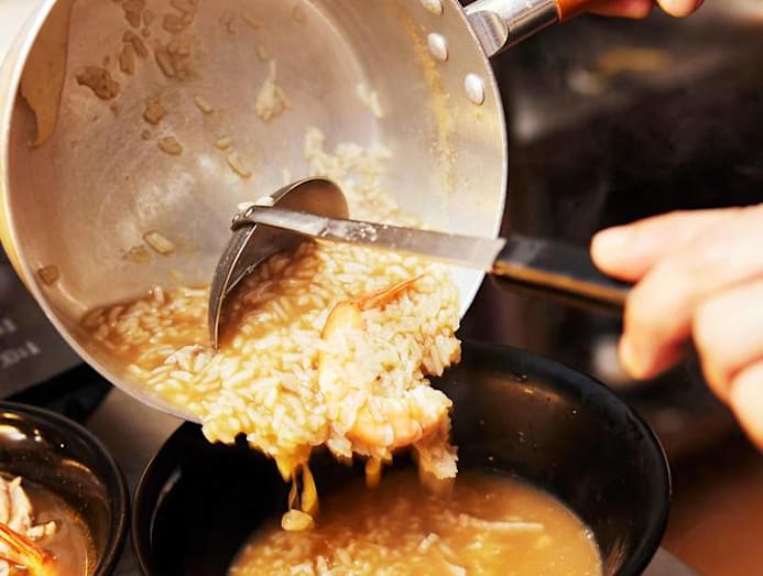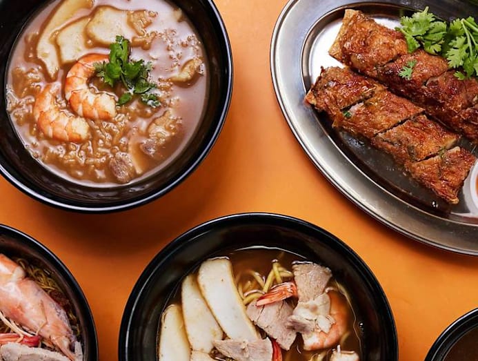 2020 and the pandemic saw many people pivoting from longtime professional careers to the F&B industry. But while most were content with home-based food businesses, interior designers Kinstons Sim, 40, and Louis Chia, 43, opened HeyMe, a hawker stall specialising in prawn broth-based dishes in Upper Boon Keng Market last month. One of their signature dishes is “prawn porridge” — which looks pretty similar to the popular pao fan.