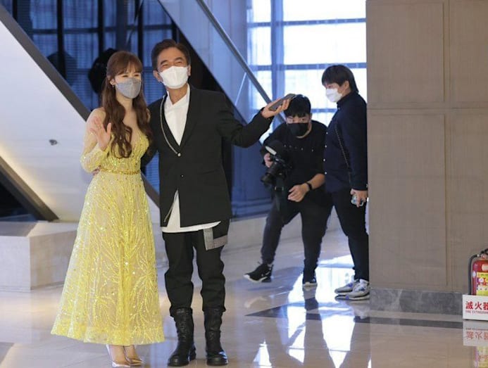 Jacky and his eldest daughter Sandy, who is also a host, met with reporters outside the wedding venue to answer questions.