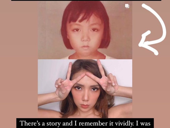 On Sunday (Oct 11), Jean posted the first of her “How it started VS how it’s going” series with three pics: a moody childhood photo of her when she was six, one of her dog Biscuit, and a shot of a plant she grew herself (third pic).