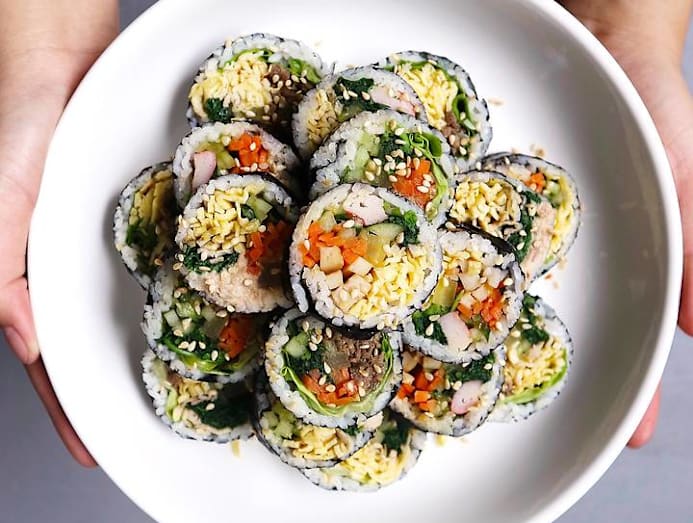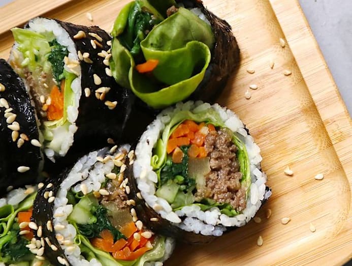 So when Ninez decided to start a home-based business while she was working from home during the Circuit Breaker, it was a no-brainer what she should make: Gimbap (sometimes spelled kimbap), Korean-style rice rolls bundled in seaweed and crammed with different fillings, which she tried multiple times on her trips. Think a larger, more rustic version of Japanese maki, with the rice typically seasoned with sesame oil and salt only instead of vinegar. “I wanted something that wouldn’t consume a lot of my time ’cos I’m still working from 9 to 6, and I really love gimbaps,” explains the self-professed foodie, who’s been cooking and baking since she was 13 and was inspired by her mum, a “really great cook”. “Plus they’re quite hard to find here in Singapore, especially halal ones.”