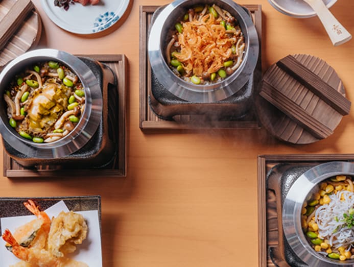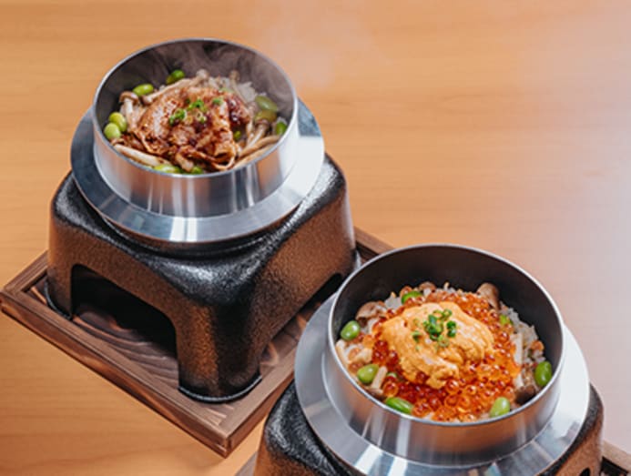 Some highlights include Unagi Kamameshi with grilled Kagoshima freshwater eels and Salmon Ikura Kamameshi with grilled salmon. There are also luxe options like Awabi (Japanese abalone) Kamameshi with the shellfish slow-cooked in sake for four hours, Uni Ikura Kamameshi, Wagyu Kamameshi and Kinmedai Kamameshi with grilled kinmedai (golden-eyed sea bream). All kamameshi orders are topped with seasonal vegetables.