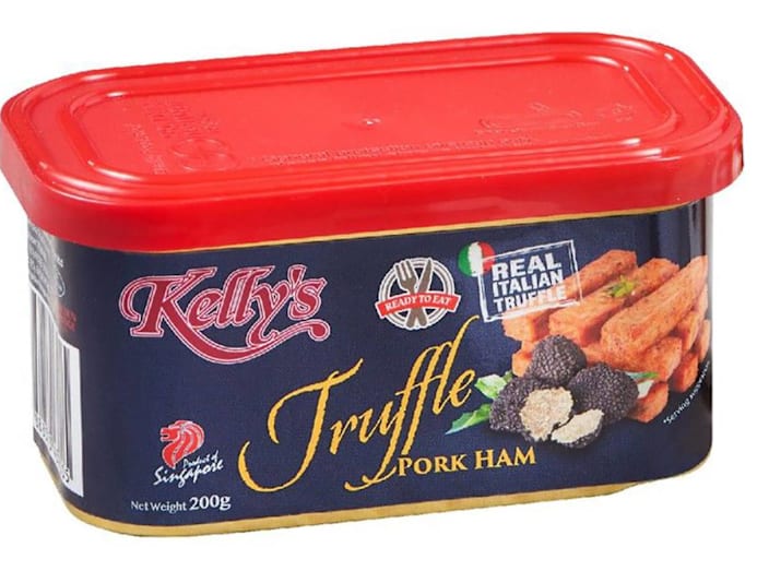 Luncheon meat? Good. Truffle? Great. Luncheon meat with truffle? Well, it sounds fab in theory but the proof is in its taste. So here we are, trying it out. Homegrown processed meat manufacturer, Kelly’s, has soft-launched its made-in-Singapore Truffle Pork Ham — canned luncheon meat loaded with black truffles — on e-commerce site Shopee. We’re no stranger to everyday affordable fare that’s been truffled-up for a touch of luxury, especially in fast food dishes. Just this year we’ve seen KFC dish out parmesan truffle fried chicken, and truffle mayo burgers and fries from Burger King. However, the fragrant fungi in a (somewhat) cheap can of meat is new to us.