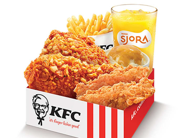 For a bit of variety, there’s this box which has a mix with two pieces of Thai chicken as well as two pieces of the original Hot & Crispy Tender Chicken, plus regular whipped potato, fries and a drink.