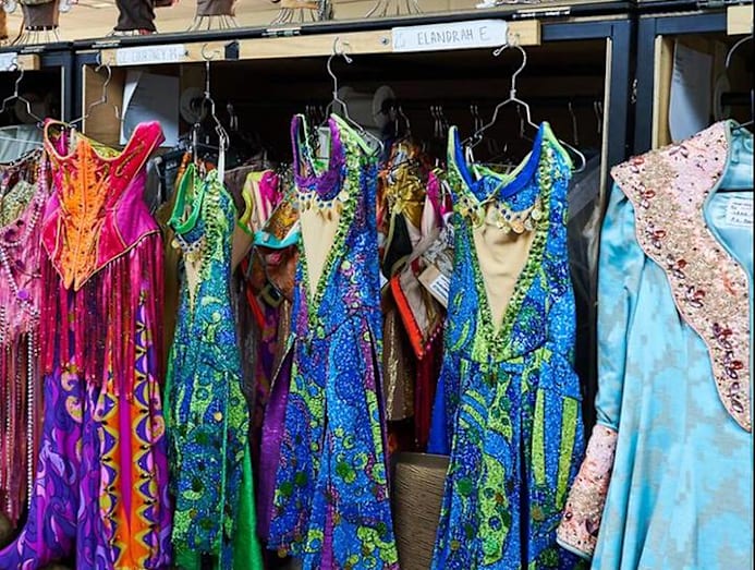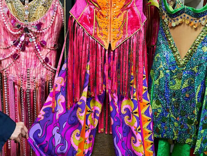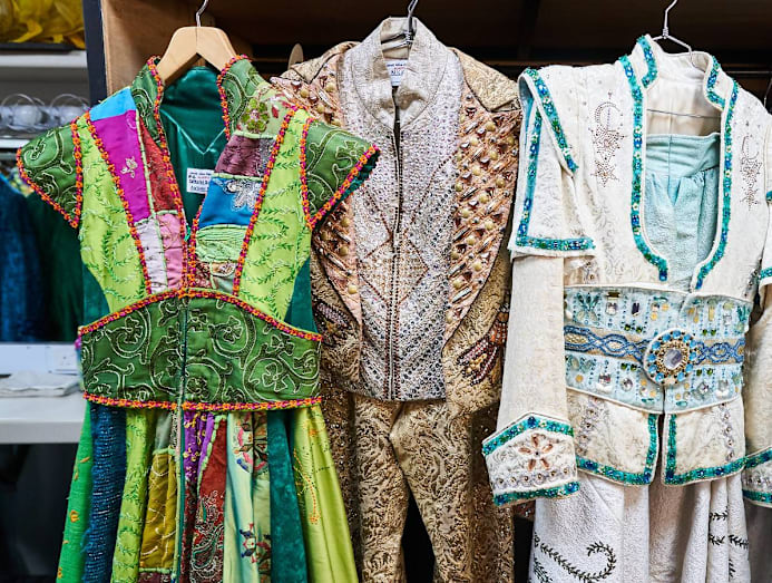 The show travels with 32 shipping containers, and one-and-a-half containers are costumes alone. That amounts to about 200 tonnes of sets, props and costumes, which is double the weight of what the average musical production travels with.