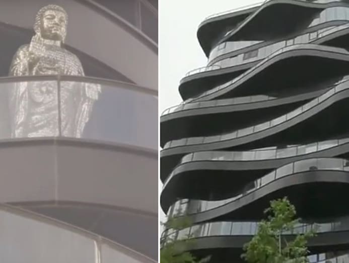 According to the netizen, who says that she has to pass by the condo on her way to work every day, the imposing statue can be seen from a distance away and is on an eighth floor unit in Smart Hero-Central Park Plaza. She also estimated its height to be about two metres tall.
