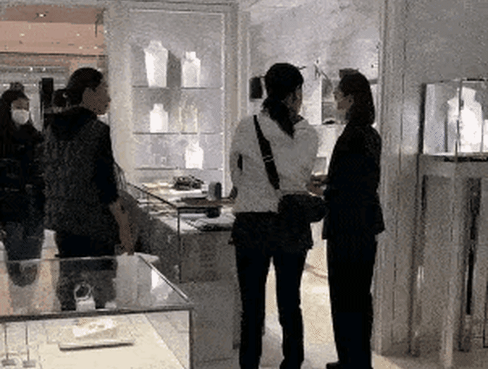 The woman standing on Na Ying’s left is believed to be her manager-slash-sister Na Xin, who remained silent along with Xiaotong as the star spoke to the boutique staff.