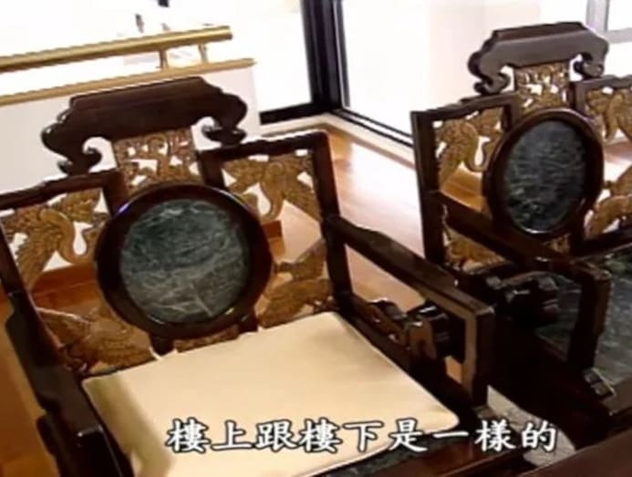 Yu-ching's spacious living room is free from clutter and only has traditional Chinese rosewood furniture. Looks real cosy, huh?