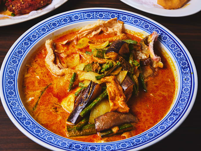 Served bubbling in a claypot, the curry is packed with thick pieces of angkoli (red snapper), sliced eggplant, ladies fingers, tau pok and tau kee. The fresh-tasting chunks of flaky fish and crisp tau kee did a good job in absorbing the fragrant, mildly spicy curry. The curry itself is well-balanced and homely — rice is mandatory.