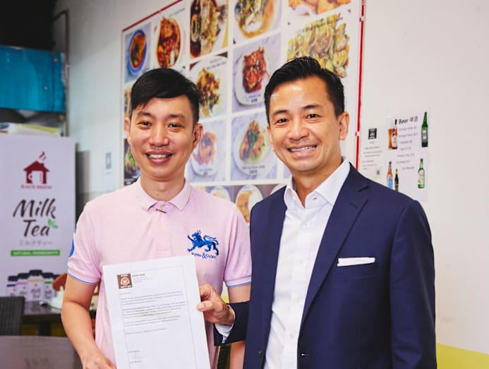 One such customer is Eric Sim (right), who somehow turned up for lunch on the day we visited Happy Wok. The career coach describes how he was swayed by Abel’s passion and resilience after his first two orders during the circuit breaker. “I saw the effort and pride he took in his food, as well as his passion for service through the letter I received.”