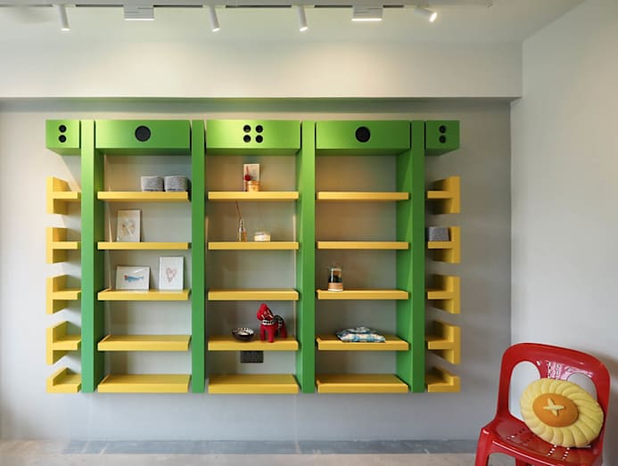 This isn't your typical Singaporean living room, and yet, it's brimming with more local flavour than a standard BTO. The most eye-catching piece here is of course a custom shelf built to resemble People’s Park Complex in Chinatown. “The homeowners are particularly enamoured by it,” Guofeng tells 8Days.