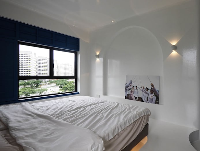 They settled on local and Peranakan styles for the common areas, while the designs for the bedrooms are influenced by the couple's favourite vacation spots: Santorini, Japan and Ranomafana National Park in Madagascar.