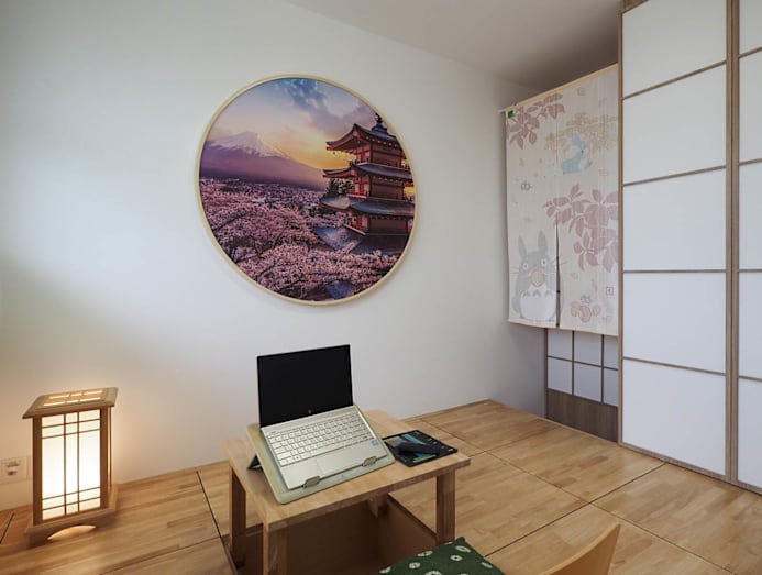 The study room was modelled after a Japanese ryokan. To make the space functional, a multi-purpose modular raised platform was built. It not only serves as storage — some can be converted into table tops as well.