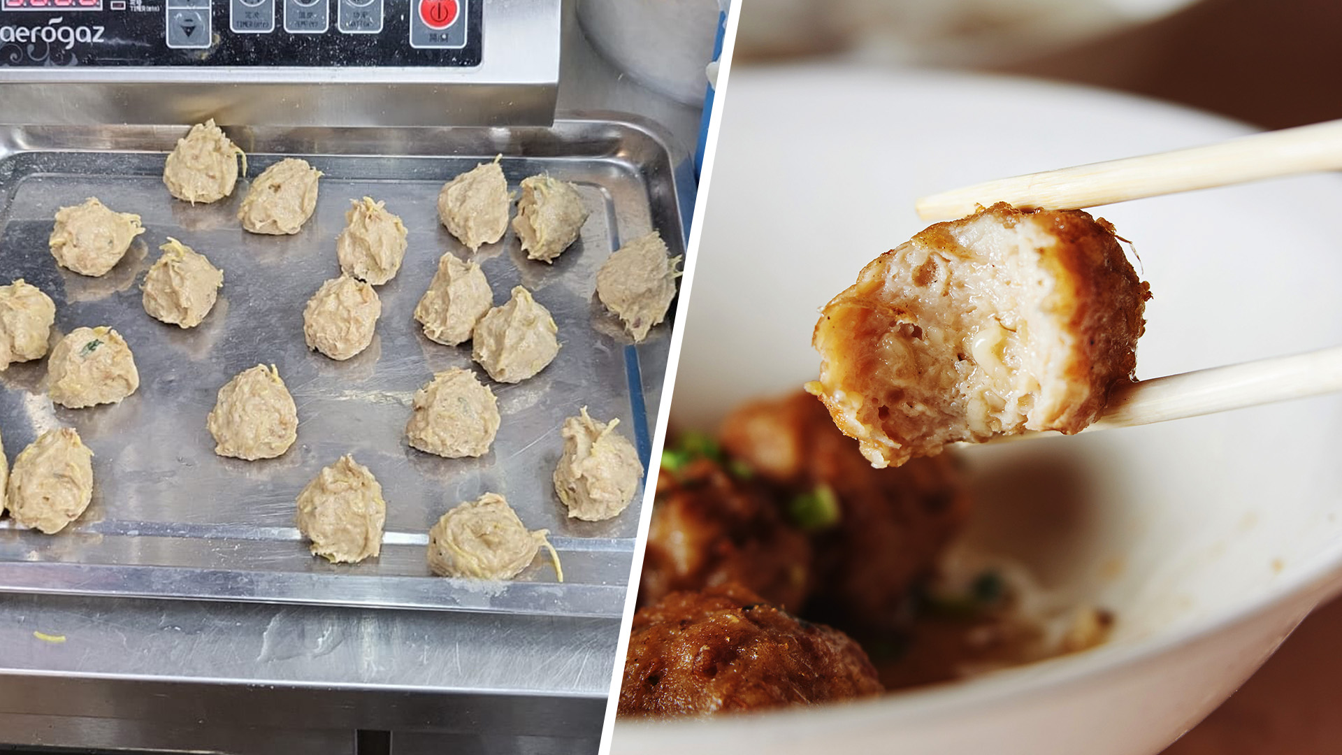 “I didn’t have any beehoon on hand, so I substituted it with bits of mee kia and it turned out tasting really good. The noodles give the meatballs a nice texture,” he says.