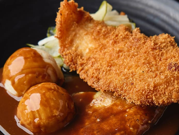 Dory done two-ways: grilled and slathered in brown sauce, plus battered a la fish and chips. The deep-fried fillet is satisfyingly crunchy, while the grilled one is standard stuff. This is paired with two scoops of mashed potatoes smothered in brown gravy.