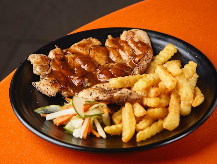 The original owner of the Western food stall (formerly named The Meat Shack) specialising in chicken dishes, whom Jelyn refers to as “boss hero”, pivoted from the nightlife biz and opened this stall in January (he declined to be interviewed). The pair became closer after the death of a mutual friend, also in the nightlife industry, whose business had shuttered due to the pandemic. “It was a huge blow to me. I couldn’t bear to see another friend’s business doing badly,” she says.