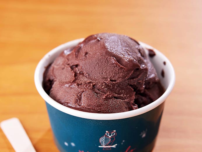 Unfortunately, we can’t say the same for these two flavours (coincidentally paired on a cinnamon cone above). The scoop above is a combination of coconut milk and water, grated coconut and biscuits, while the second is a simpler mix of mango puree and coconut milk that’s also vegan-friendly. We prefer the former, which packs a pleasant textural crunch thanks to the biscuit crumbs – though we couldn’t really find any of the grated coconut.