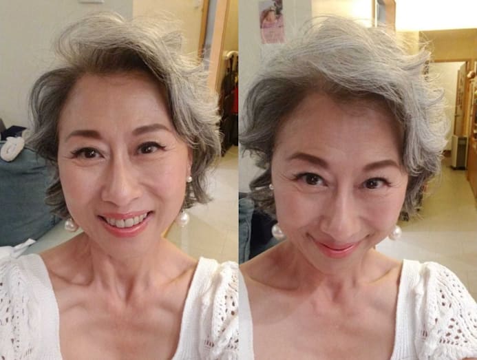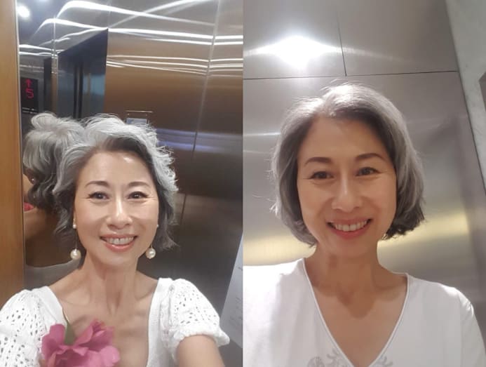 However, what really struck netizens were Sally’s selfies, in which she’s proudly flaunting a head of grey hair. The lines on her face were also not Meitu-ed away (see below).