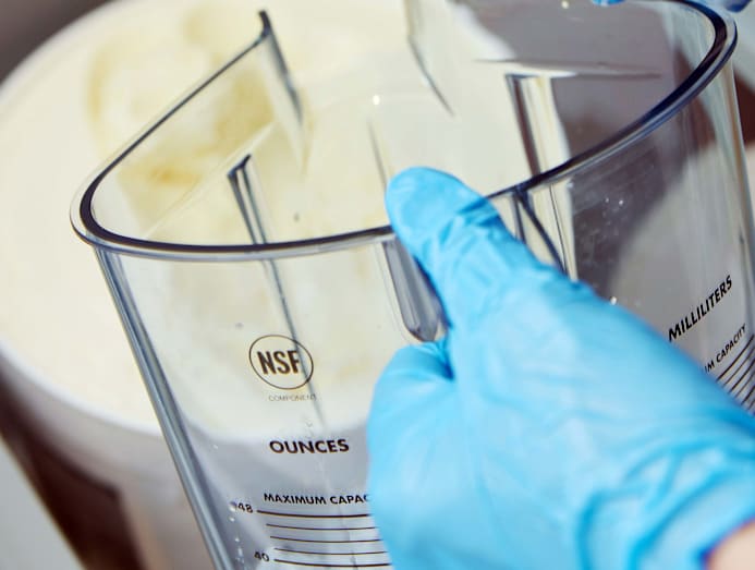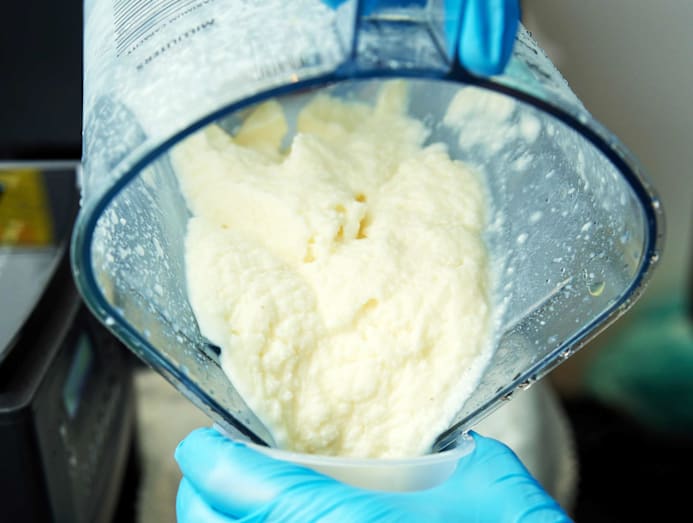 Sleek and modern with concrete floors and a long curved counter that links the cashier to the blender station. The owners had originally planned for the latter to be done in the style of a show kitchen (where customers can watch their drinks being made), but a renovation hiccup has delayed the plan for now. The space can comfortably accommodate four to five people in the queue. You can also snap a pic of your drink in front of the accent wall emblazoned with the shop’s logo – which kinda reminded us of Shake Shack’s famous one.