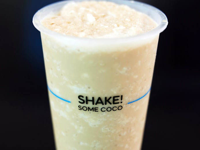 Enter Shake! Some Coco, the newest kid on the block. Opened by three pals who’ve known each other since secondary school, the beverage brand located at Hillion Mall in Bukit Panjang aims to be “the Starbucks of coconut shakes”. The takeaway shop will officially open for business on Oct 29 – 8days.sg gets a sneak peek ahead of its opening.