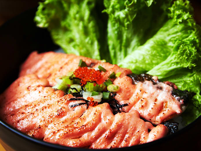 This bowl comes with two slabs of salmon topped with a generous layer of lightly-torched mentai sauce. We like how the salmon is crisp on the outside, moist and tender on the inside. But the star has got to be the in-house concocted creamy, savoury mentaiko sauce that is made with “secret ingredients”. “One customer told us he’s hooked on the sauce,” shares Richard.