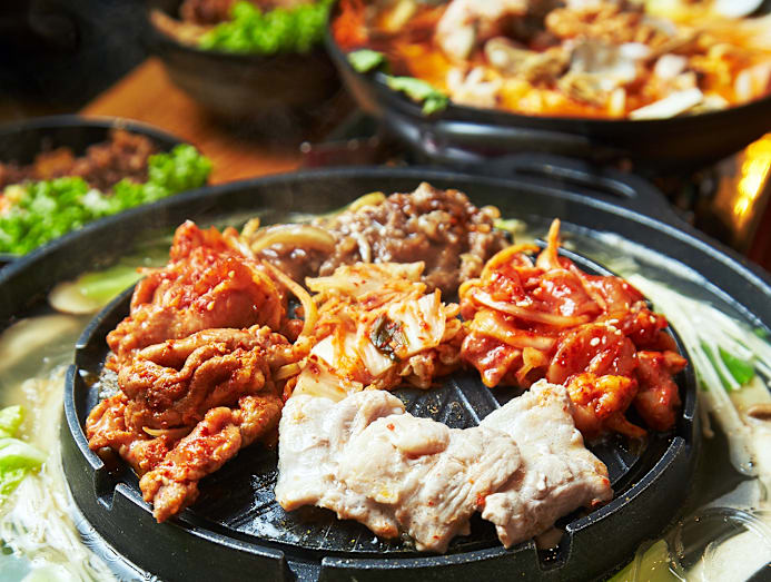 When you go to a place called Gogiyo, you gotta try their meat platter. With 12 items including marinated beef short plate, pork belly, spicy marinated chicken and pork collar, this set is pretty value-for-money. We enjoy the fatty pork belly and sweet-savoury beef, as well as their homely, umami ikan bilis-based soup stock. If you want to amp it up, Shane recommends grilling the beef first so the juices and flavour from the meat flows into the stock, before adding kimchi for a flavourful sour-spicy soup.