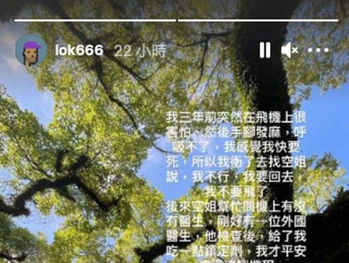 “The flight attendant asked if there was a doctor on the plane and there happened to be a foreign doctor. After the doctor checked me, he gave me a tranquiliser and I managed to complete the journey safely. Later, I went to see a doctor and it was confirmed that [I have] panic disorder.