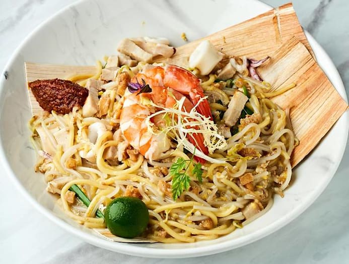 According to the staff, this is already a favourite with customers. It’s fried with tender strips of pork belly, squid rings and giant tiger prawns, and is served charmingly old school-style on an opeh leaf with homemade belacan. Pretty yummy, save for one thing: A lack of wok hei. Still, it’s shiok enough for us to want to return (especially during lunch, when you can get the Hokkien mee plus a drink for just $12 as part of the set menu).