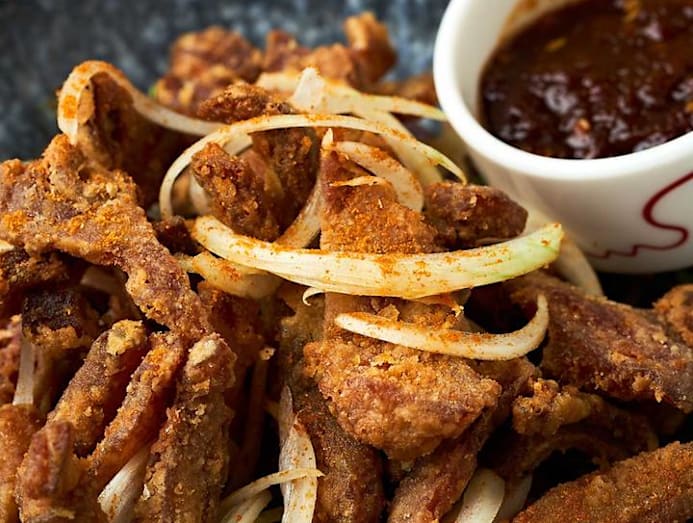 Spicy, crispy, chewy and fried in a special four-flour mix, this is the ultimate bar snack for adventurous eaters. Sadly, the restaurant says it will probably be removed from the menu soon because it’s time-consuming to make. Try it while you can.