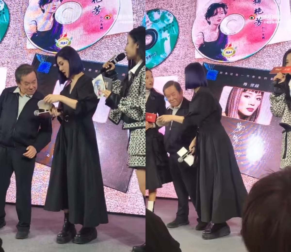 While they were on stage, Keyue, 23, gushed about being a long-time fan of Anita’s and showed off her collection of CDs (remember those?).