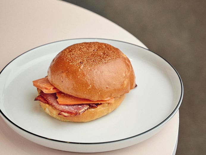 Don’t be fooled by the simplicity of this sarnie – the smoked bacon, pickled carrot and habanero mayo form a mighty flavourful trio sandwiched in a potato bun.