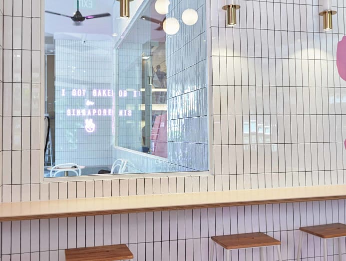 It’s hard not to whip out your phone for photos here. A mix of pale pink and white hues, gold-lettered boxes and a gotta-‘gram-it “I Got Baked In Singapore” neon sign – a signature look of Mr Holmes Bakehouse – has been faithfully transplanted to the outlet here.